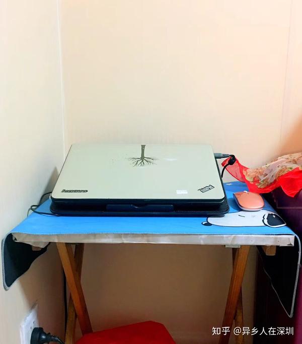 上图:床头柜对面的角落,放置着房东简易桌子。铺上鼠标垫,放着电脑。也算是工作间吧。